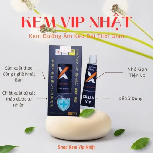 (thường gọi là Cream Vip Nhật or X-Cream Vip) là sản phẩm dạng gel bôi ngoài da, hỗ trợ nam giới giải quyết vấn đề xuất tinh sớm (EST) bằng cách làm giảm độ nhạy cảm tạm thời, kéo dài thời gian quan hệ, tăng cường sự tự tin, thường chiết xuất thảo dược và có công nghệ Nhật Bản, an toàn khi dùng cùng bao cao su và dễ rửa sạch.