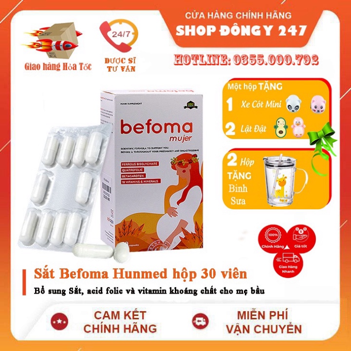 Sắt Befoma Hunmed – Bổ sung Sắt, acid folic và vitamin khoáng chất cho mẹ bầu hộp 30 viên