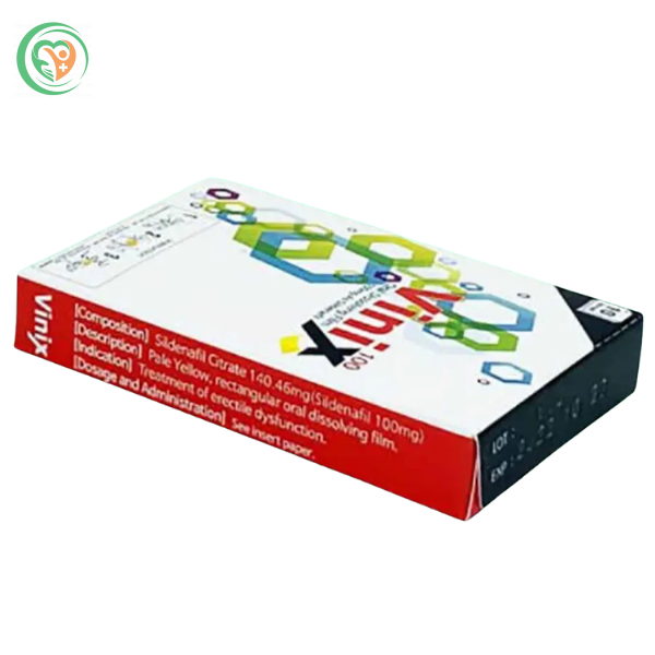Thành phần: 1 chiếc tem ngậm Vinix 100 có hoạt chất chính là Sildenafil (dưới dạng Sildenafil citrate) hàm lượng 100mg.