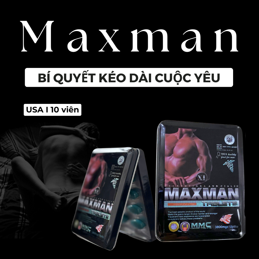 Maxman là sản phẩm hỗ trợ tăng cường sinh lý nam giới, giúp cải thiện khả năng cương cứng, nâng cao sức bền và phong độ phái mạnh. Với dạng viên uống tiện lợi, Maxman được nhiều quý ông tin dùng để tự tin hơn trong đời sống vợ chồng.